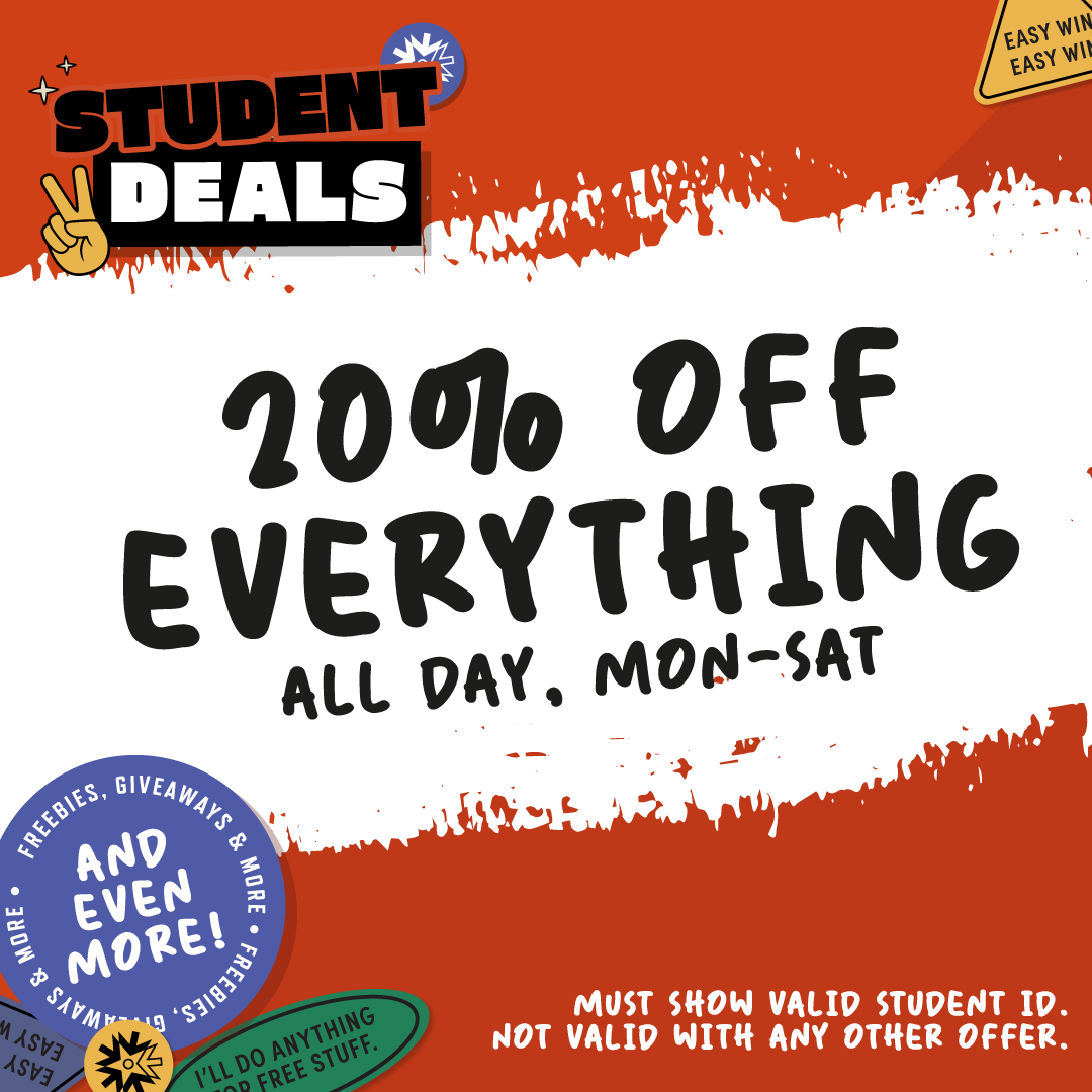 That's why we're giving you 20% off all food and drink (excluding other offers), all day Mon-Sat, some come down and fill your bellies without emptying your wallets.